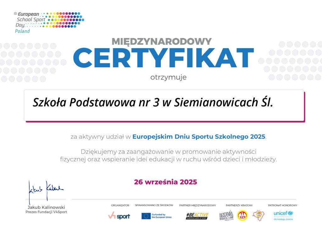 Szkoły Podstawowej nr 3 im. Tadeusza Kościuszki w Siemianowicach Śląskich.