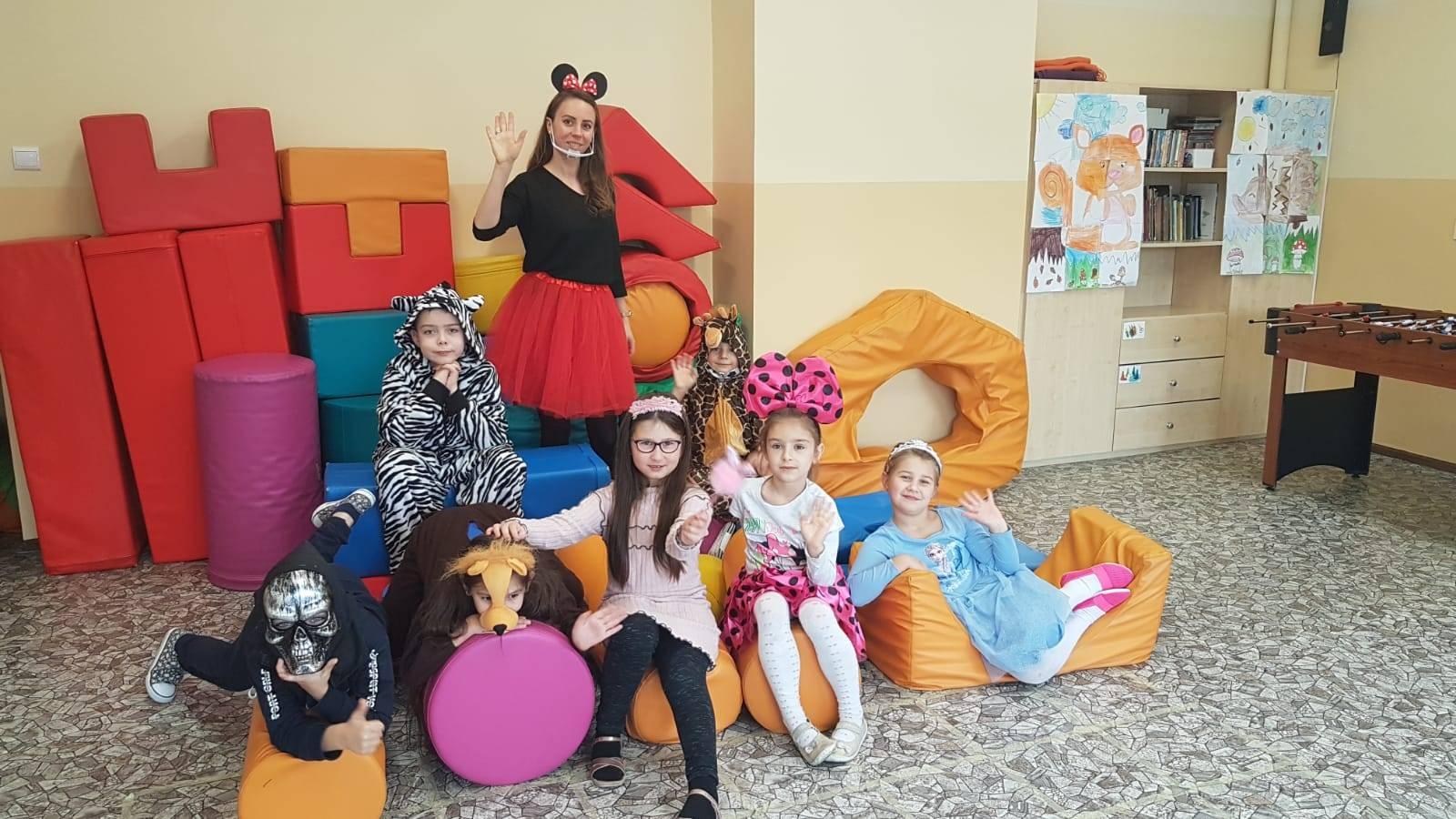 uczniowie i nauczycielka prezentują bajkowe stroje