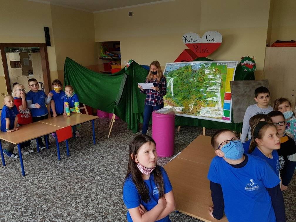 uczniowie oglądają teledysk Kocham Cię Polsko