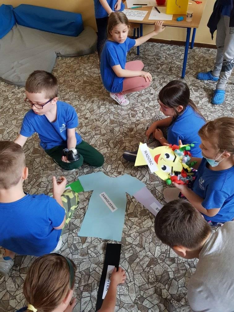 uczniowie tworzą postać z papieru